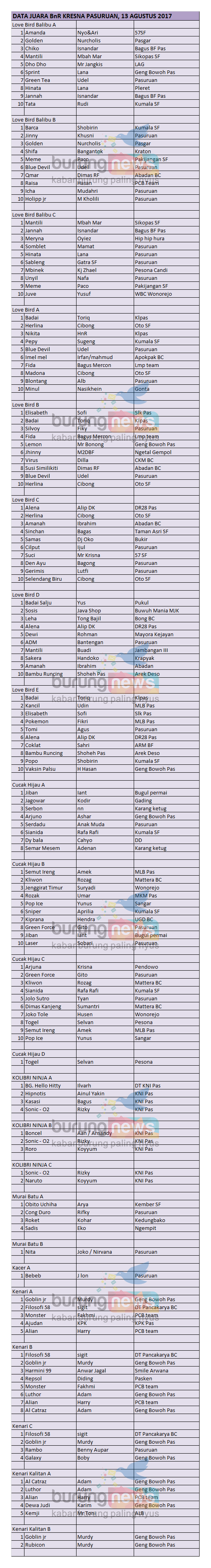 Judul : DATA JUARA BnR KRESNA PASURUAN, MINGGU 13 AGUSTUS 2017