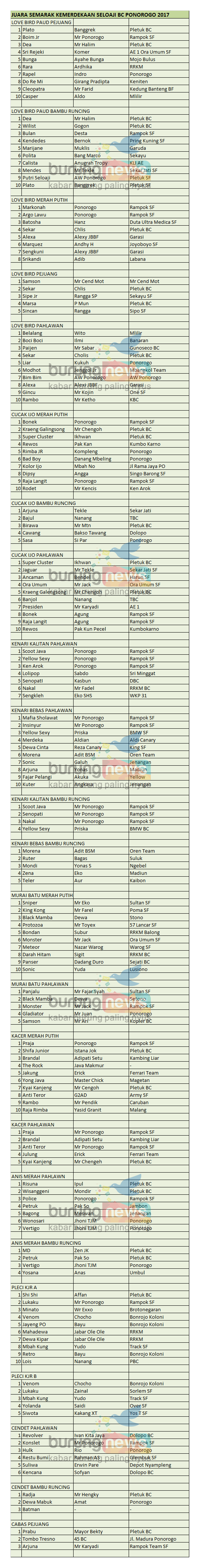 Hasil Lomba Burung