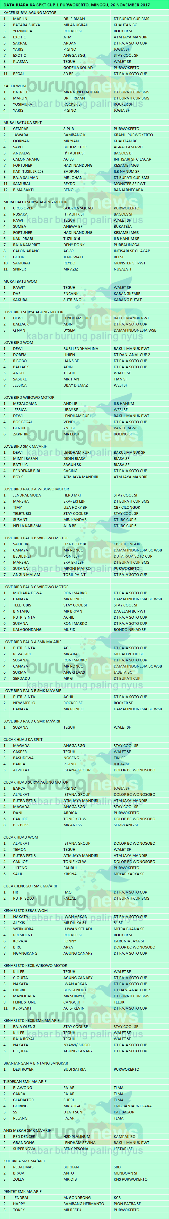 Judul : DATA JUARA KA SPKT CUP 1 PURWOKERTO. MINGGU, 26 NOVEMBER 2017