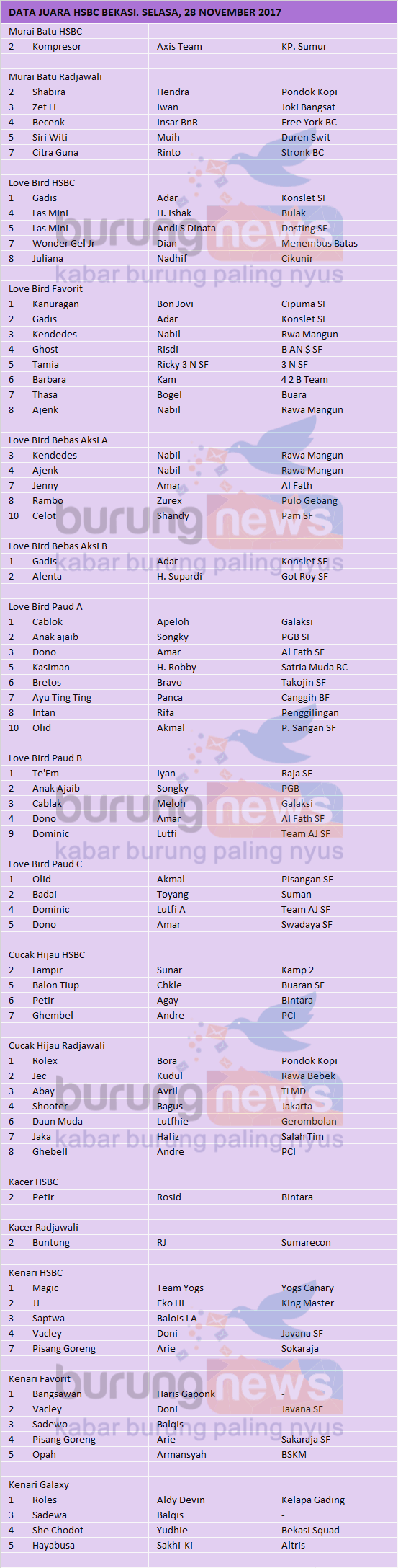 Judul : DATA JUARA HSBC BEKASI. SELASA, 28 NOVEMBER 2017