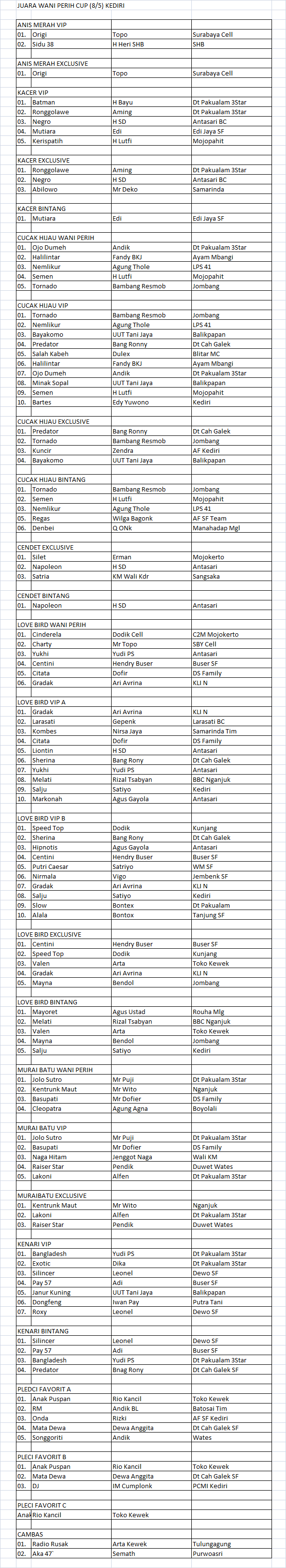 Hasil Lomba Burung