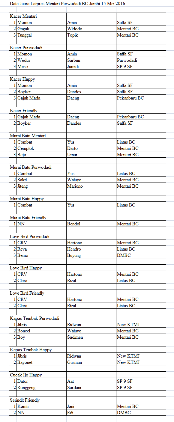 Hasil Lomba Burung