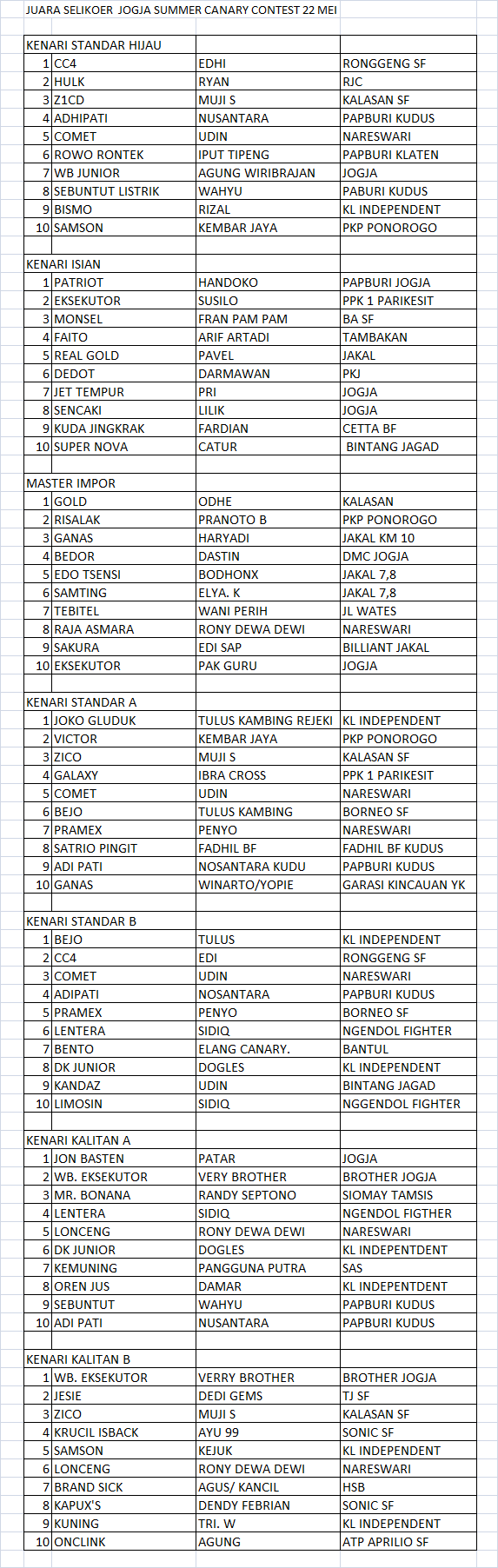 Judul : JUARA SELIKOER JOGJA CANARY CONTEST 22 MEI