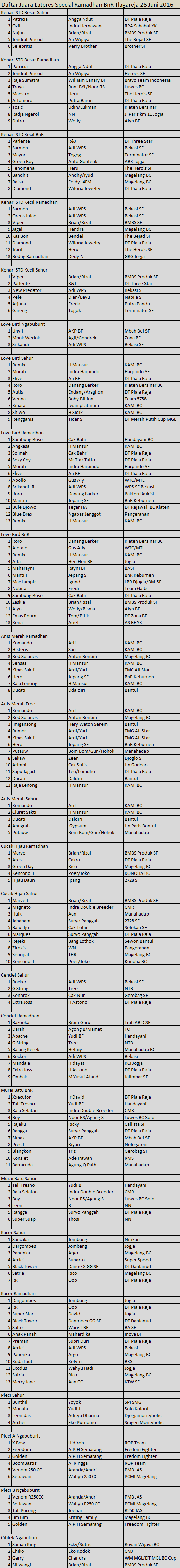 Judul : DATA JUARA BnR TLOGOREJO JOGJA, 26 JUNI 2016