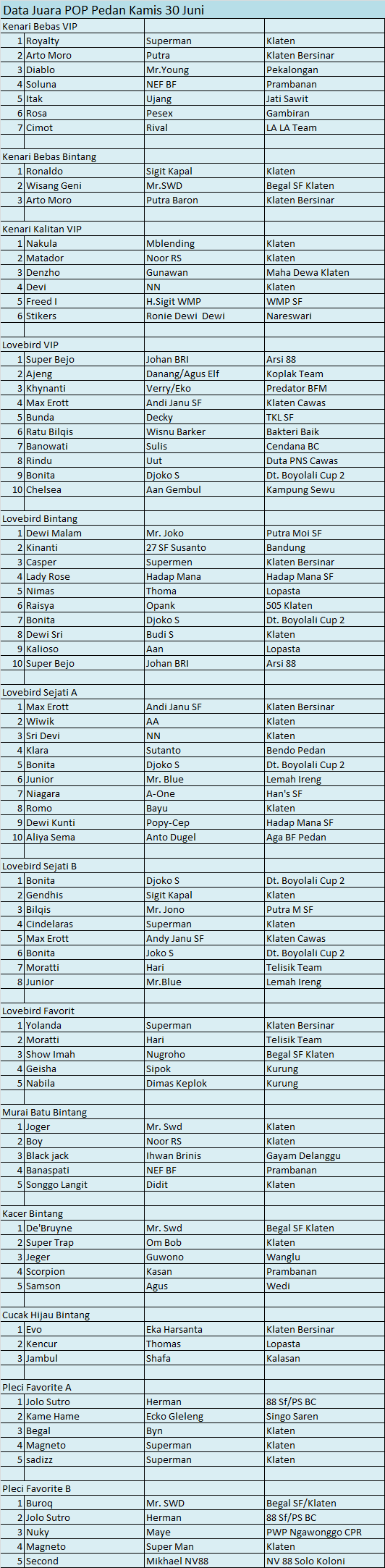 Hasil Lomba Burung