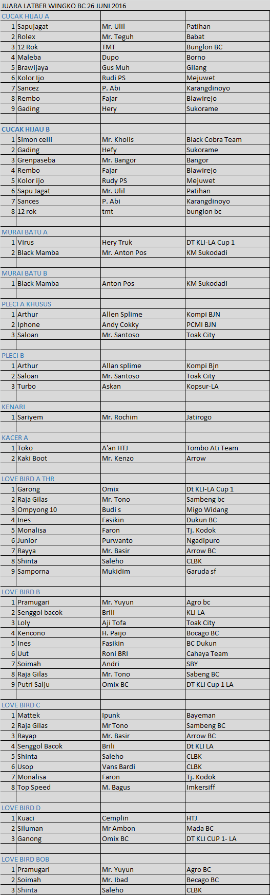 Judul : DATA JUARA WINGKO BC LA 26 JUNI