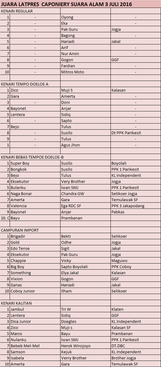 Judul : JUARA CAPONIERY SUARA ALAM, 3 JULI 2016