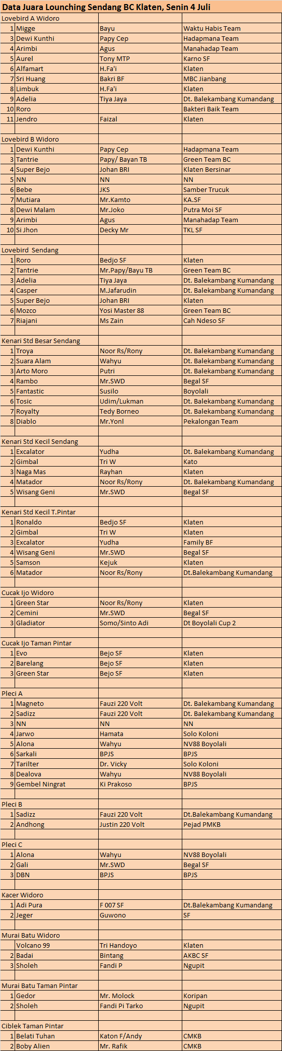 HALAL BIHALAL SATELIT BC MOJOKERTO + DATA JUARA: MB Korea dan CH Bisma Nyeri