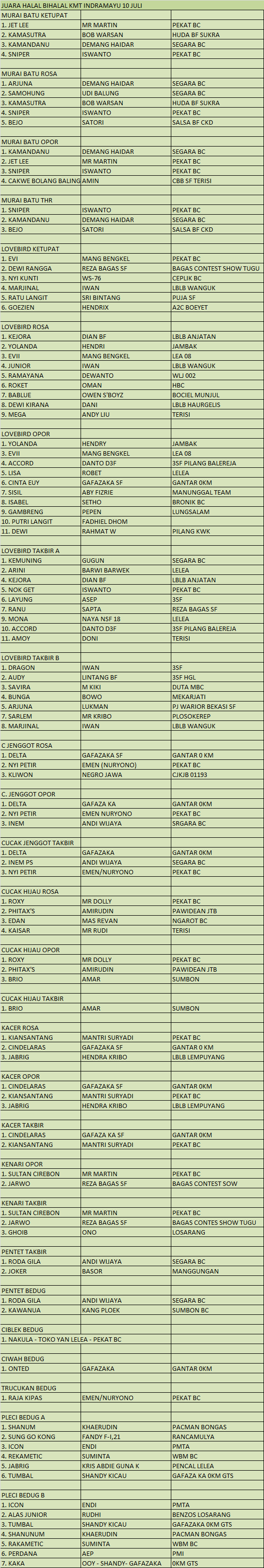Hasil Lomba Burung