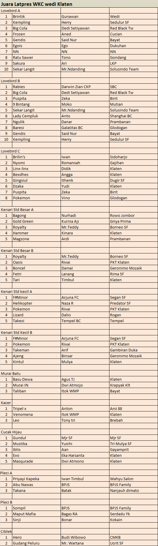 Hasil Lomba Burung