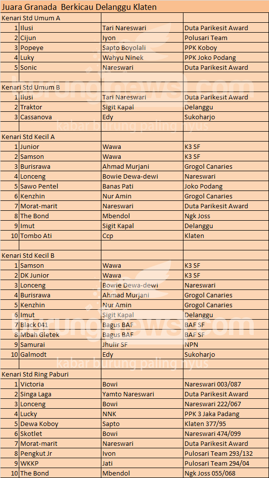 Judul : JUARA GRANADA BERKICAU DELANGGU KLATEN