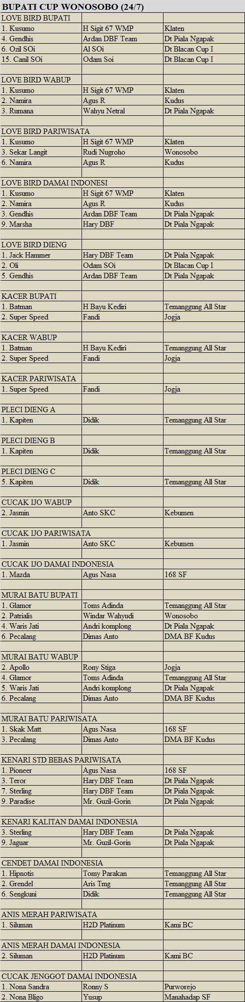 Hasil Lomba Burung