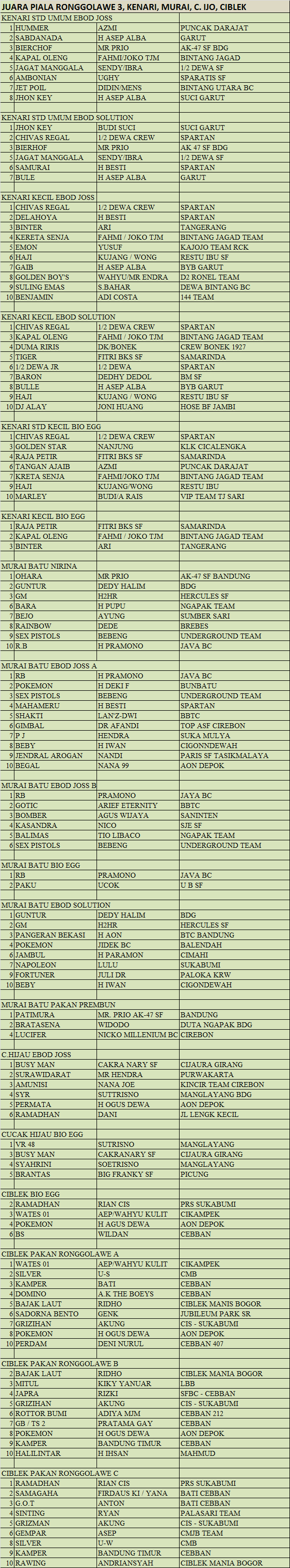 Judul : JUARA PIALA RONGGOLAWE3, KENARI, MURAI, IJO, CIBLEK