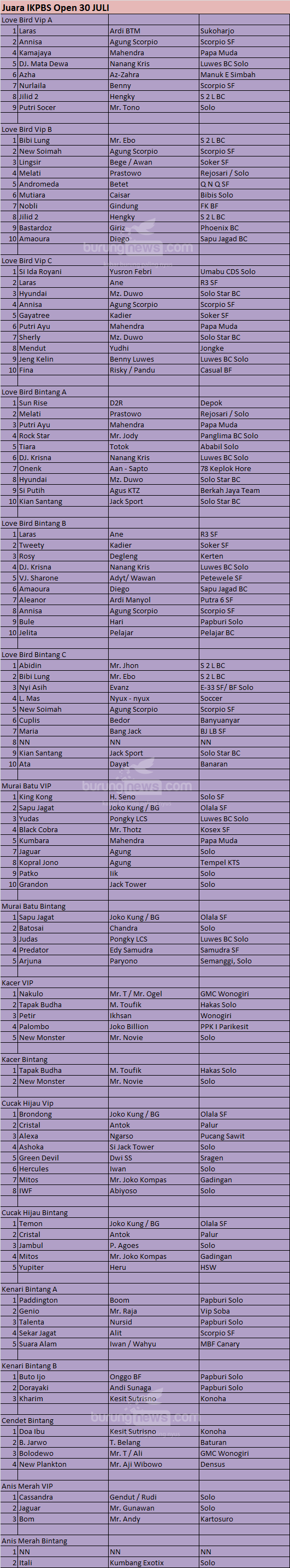 Hasil Lomba Burung