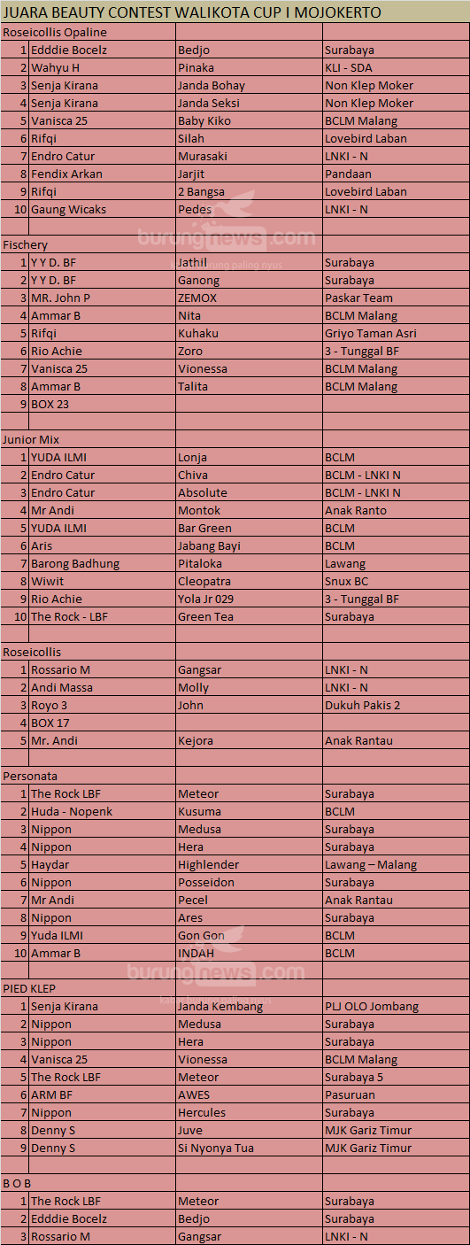 Hasil Lomba Burung