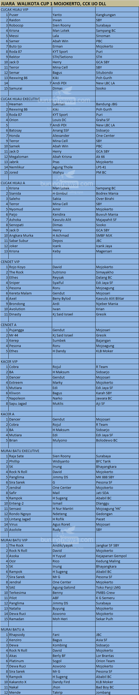 Hasil Lomba Burung