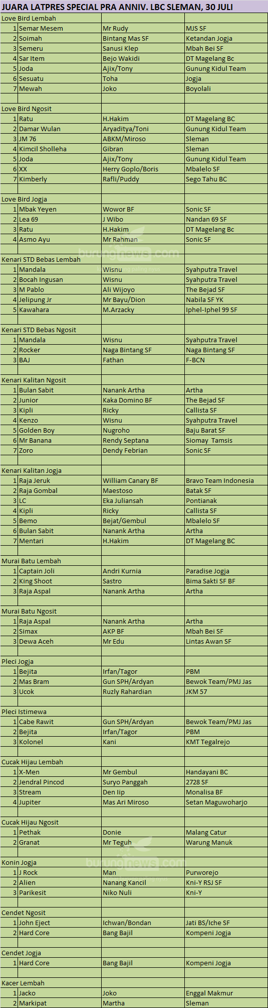 Hasil Lomba Burung
