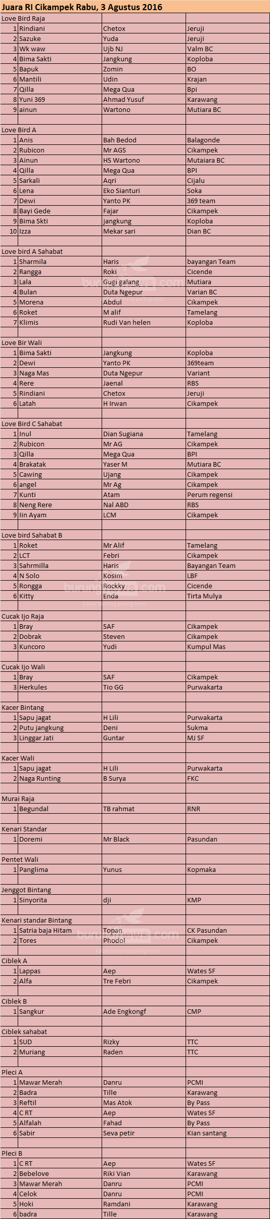 Hasil Lomba Burung