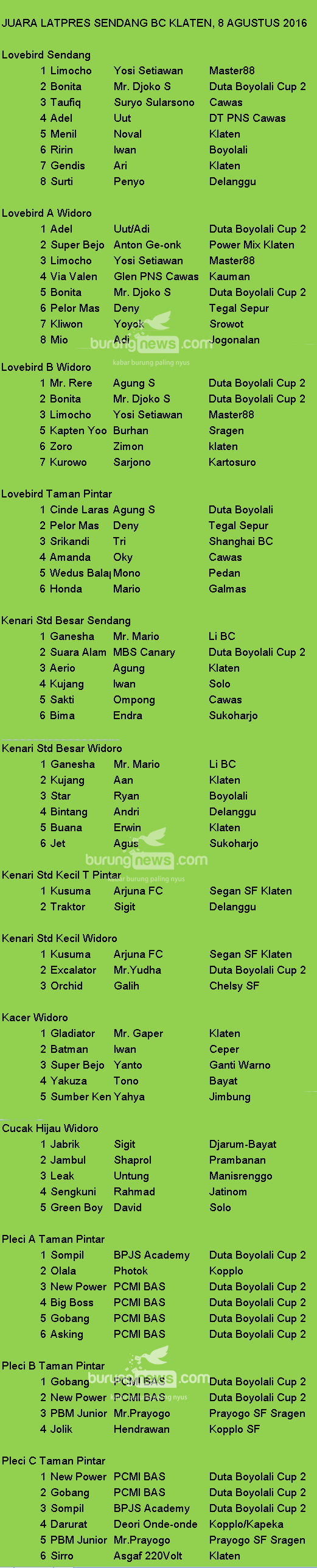 Judul : JUARA LATPRES SENDANG BC KLATEN, 8 AGUSTUS 2016