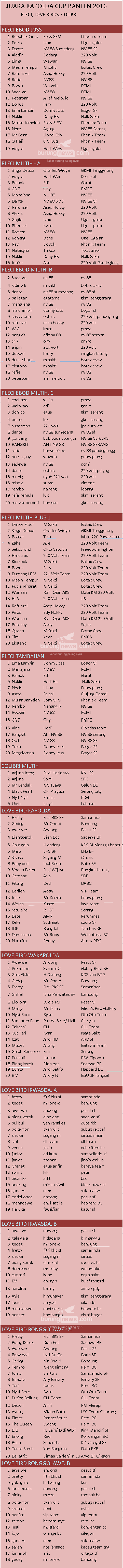 Judul : JUARA PIALA KAPOLDA CUP BANTEN 2016 : PECI, LOVE BIRD, COLIBRI