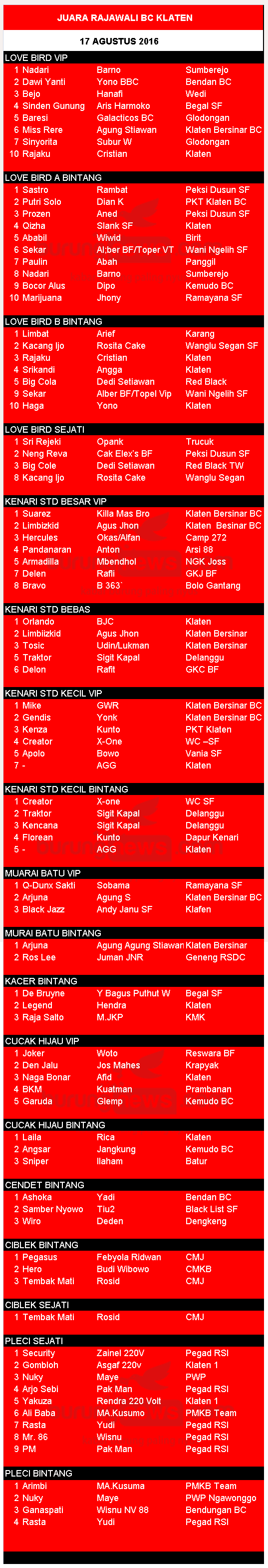 Judul : JUARA RAJAWALI BC KLATEN 17 AGT 2016