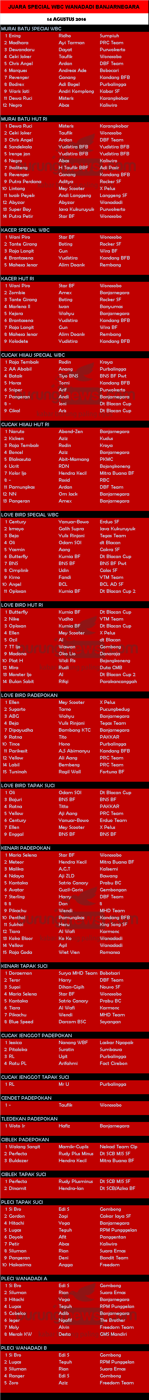 Judul : JUARA SPECIAL WBC WANADADI BANJARNEGARA