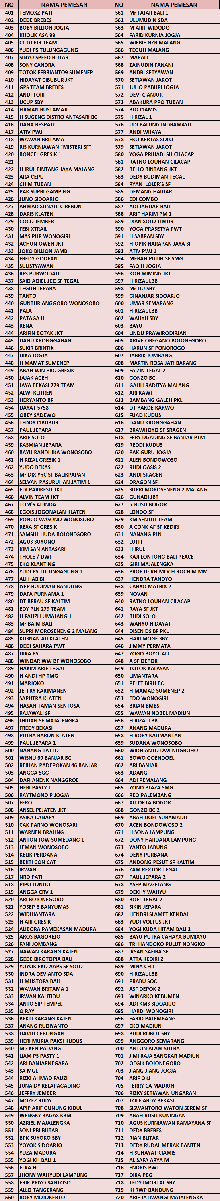 Judul : DATA PEMESAN PIALA RAJA 401-720
