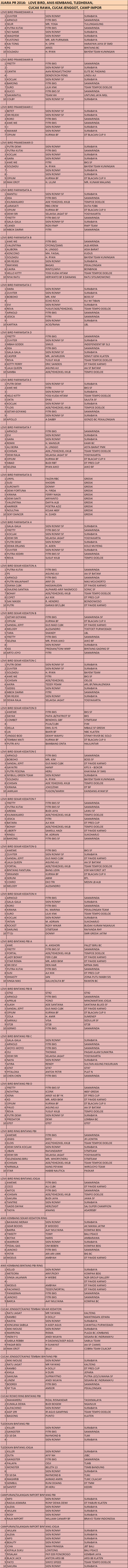 Judul : JUARA PIALA RAJA: LOVE BIRD DLL