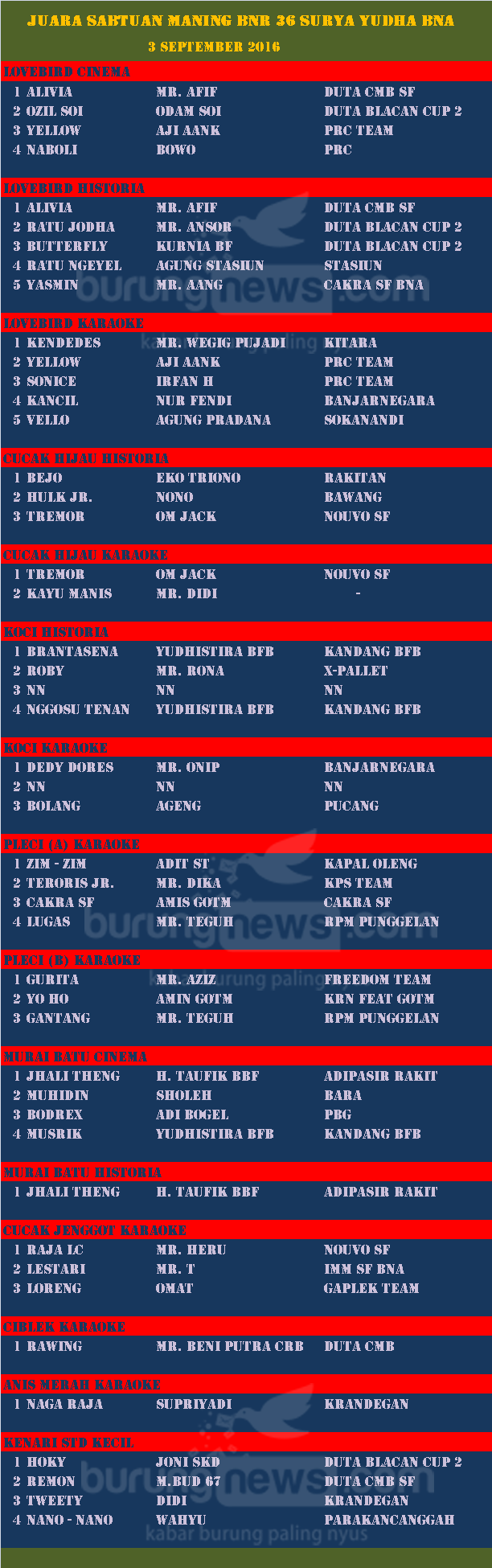 Judul : JUARA SABTUAN MANING BNR 36 SURYA YUDHA BNA 3 SEPT