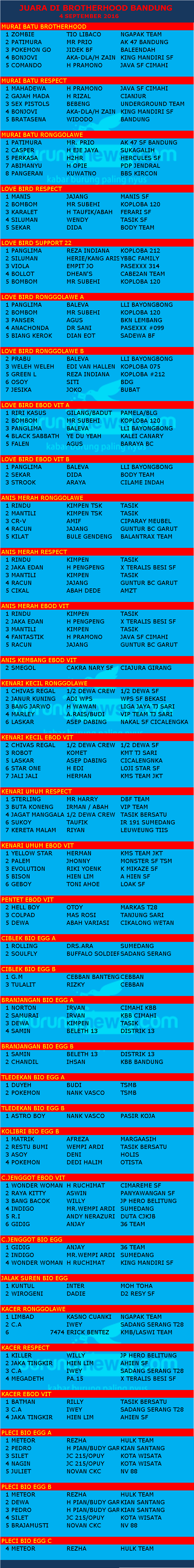 Judul : JUARA DI BROTHERHOOD BANDUNG 4 SEPT 2016