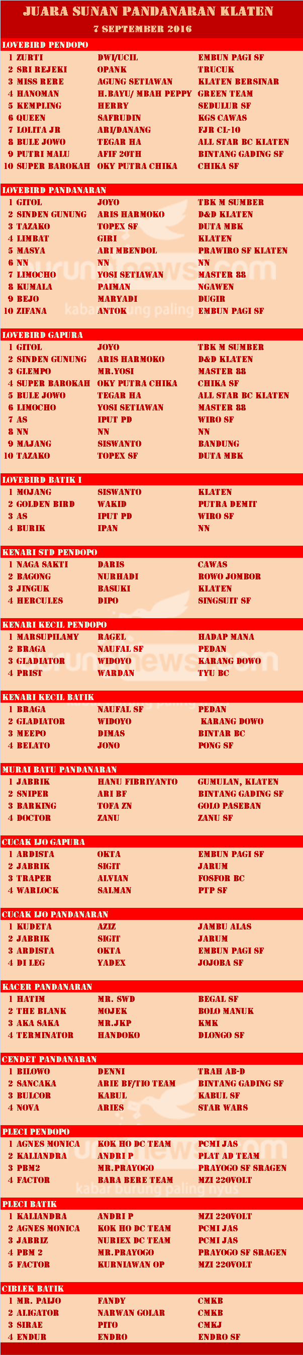 Hasil Lomba Burung