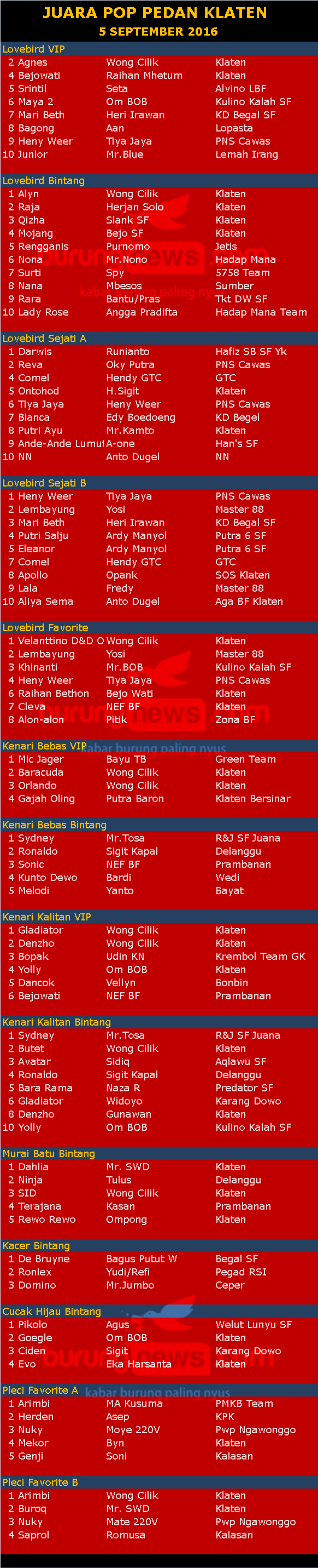 Hasil Lomba Burung