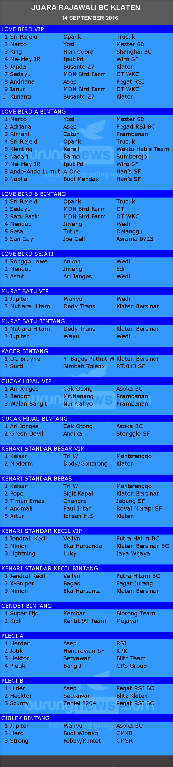 Judul : JUARA RAJAWALI BC KLATEN 14 SEPTEMBER 2016