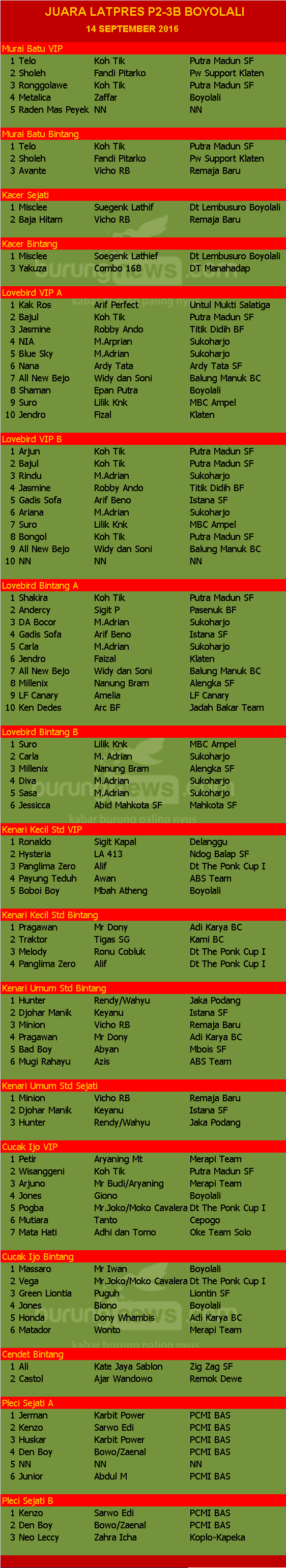Hasil Lomba Burung