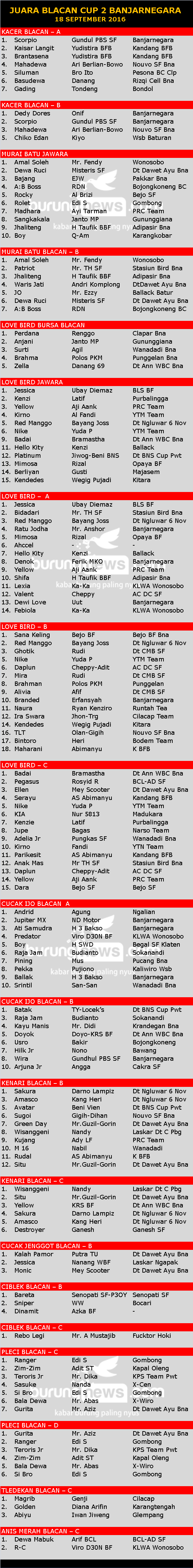 Judul : JUARA BLACAN CUP 2 BANJARNEGARA 18 SEPTEMBER 2016