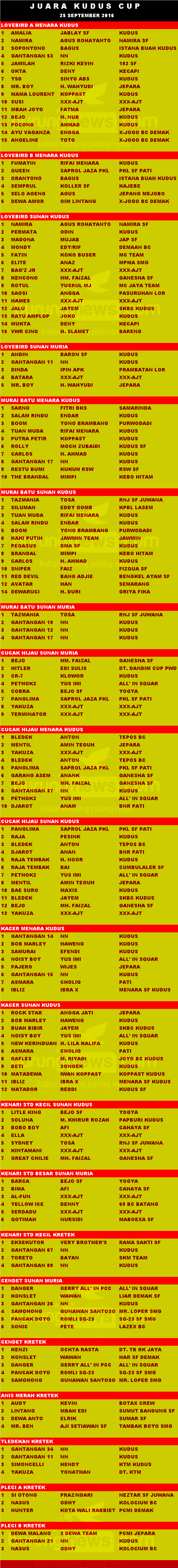 Judul : JUARA KUDUS CUP, 25 SEPTEMBER 2016
