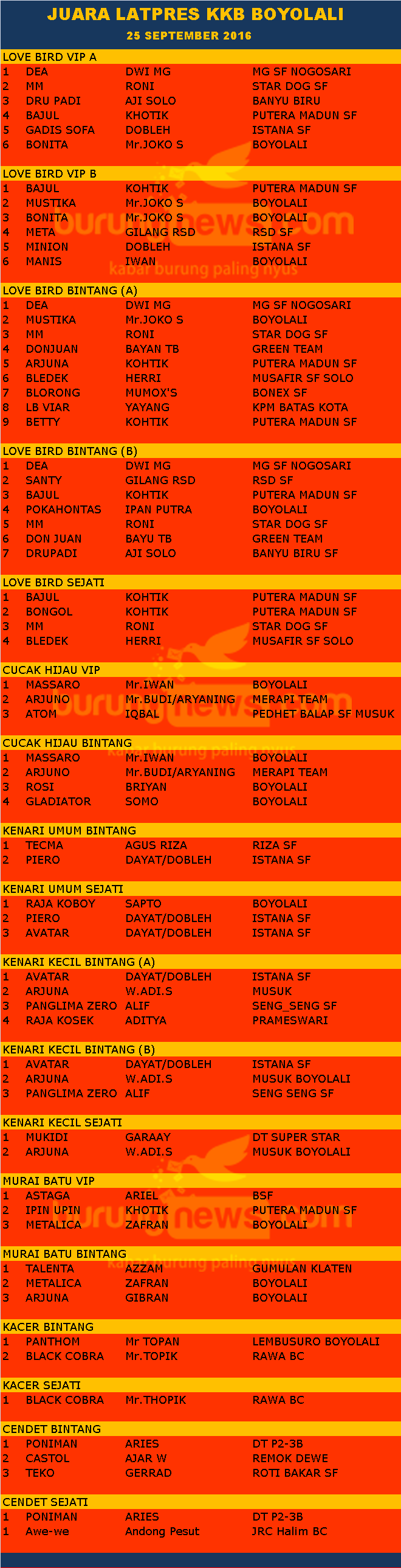 Hasil Lomba Burung