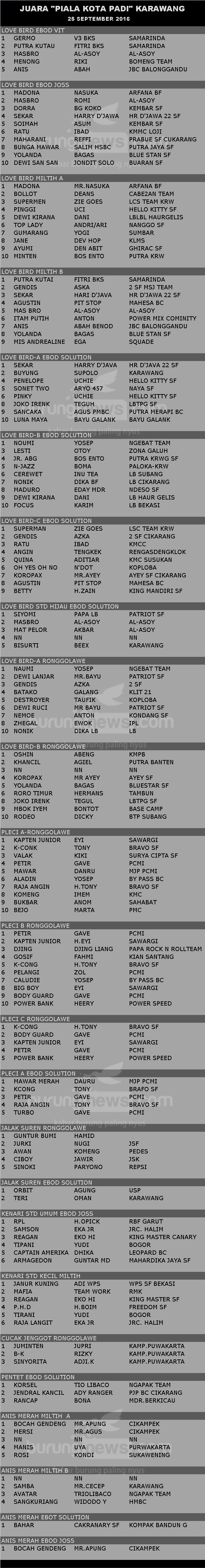 Hasil Lomba Burung