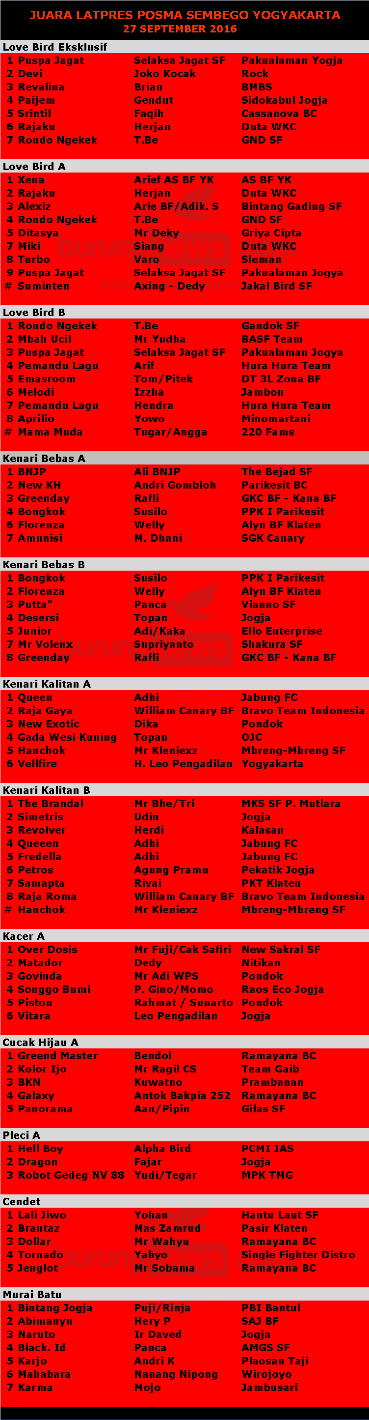 Hasil Lomba Burung