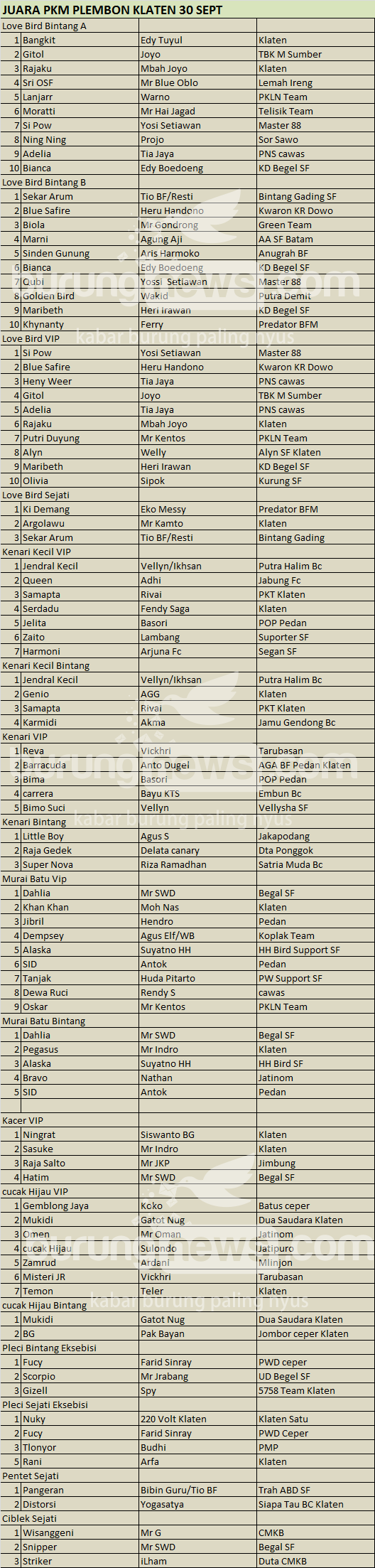 Hasil Lomba Burung