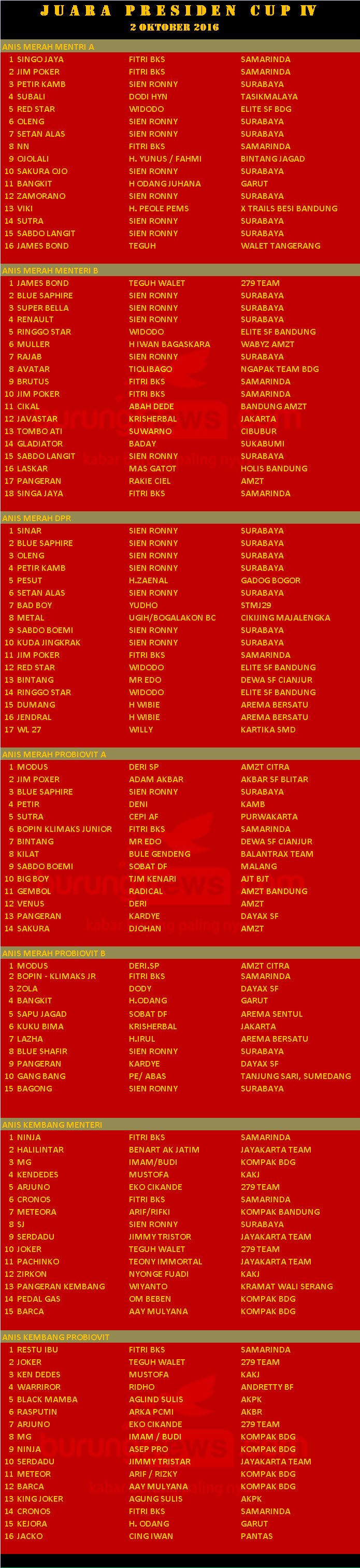 Judul : JUARA PRESIDEN CUP IV 2016 ANIS MERAH, ANIS KEMBANG