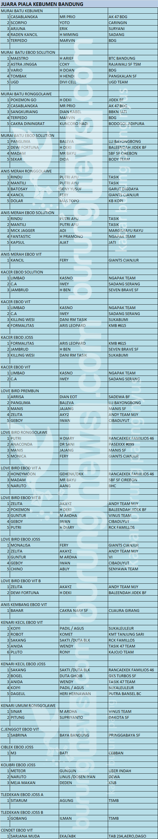 Hasil Lomba Burung