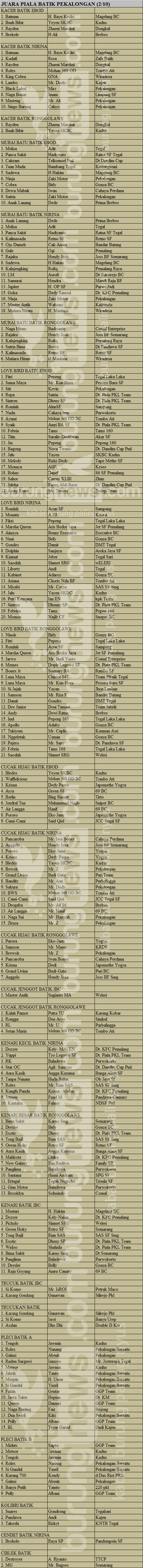 Hasil Lomba Burung