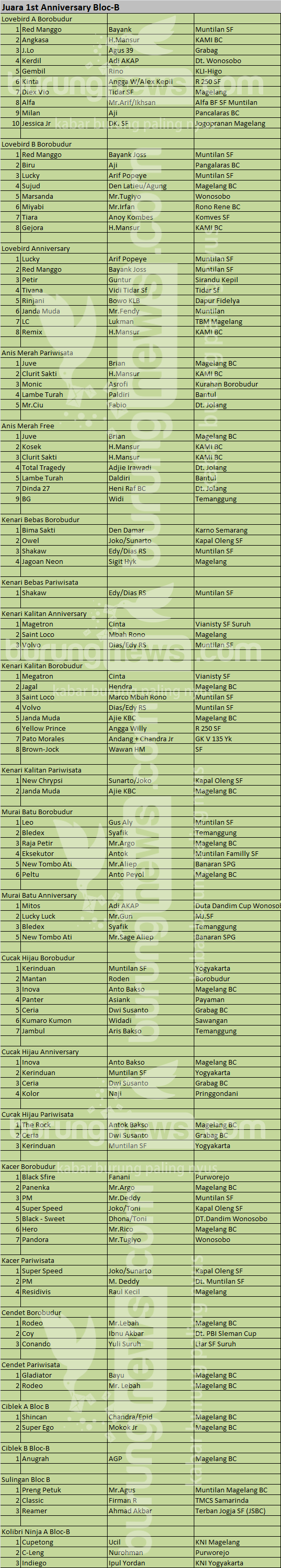 Hasil Lomba Burung