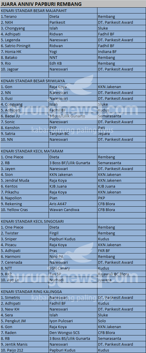 Judul : Juara 2nd ANNIVERSARY PAPBURI REMBANG