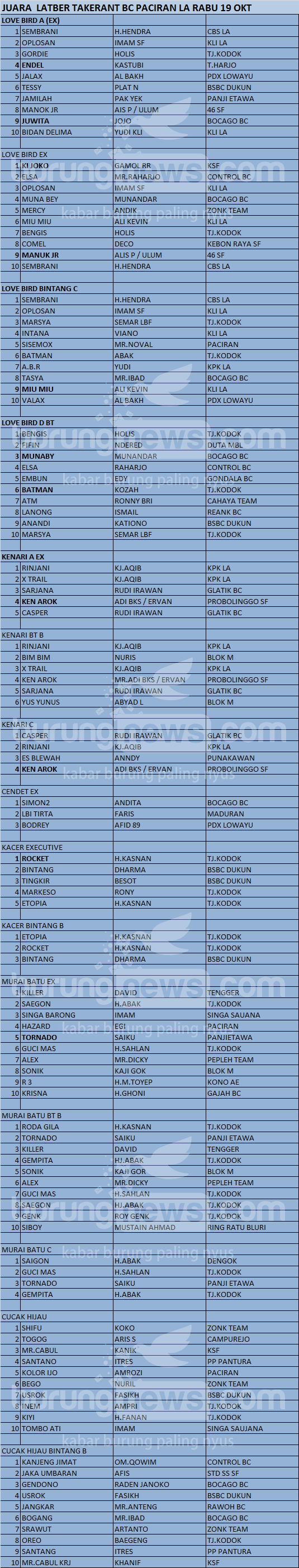Hasil Lomba Burung