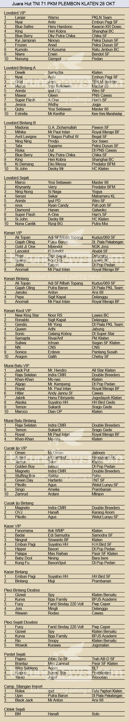 DATA JUARA MAHARAJA KOBLEN - SURABAYA (MINGGU, 29 MARET 2026)