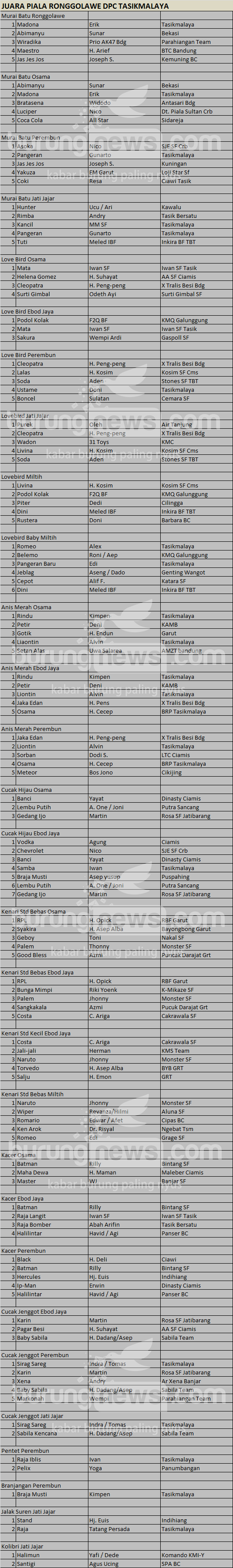 Hasil Lomba Burung