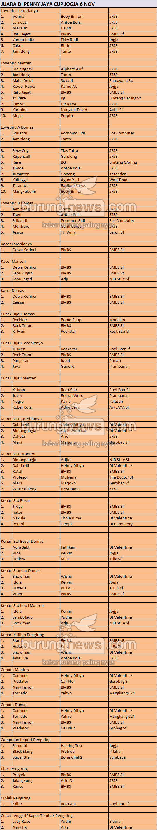 Hasil Lomba Burung