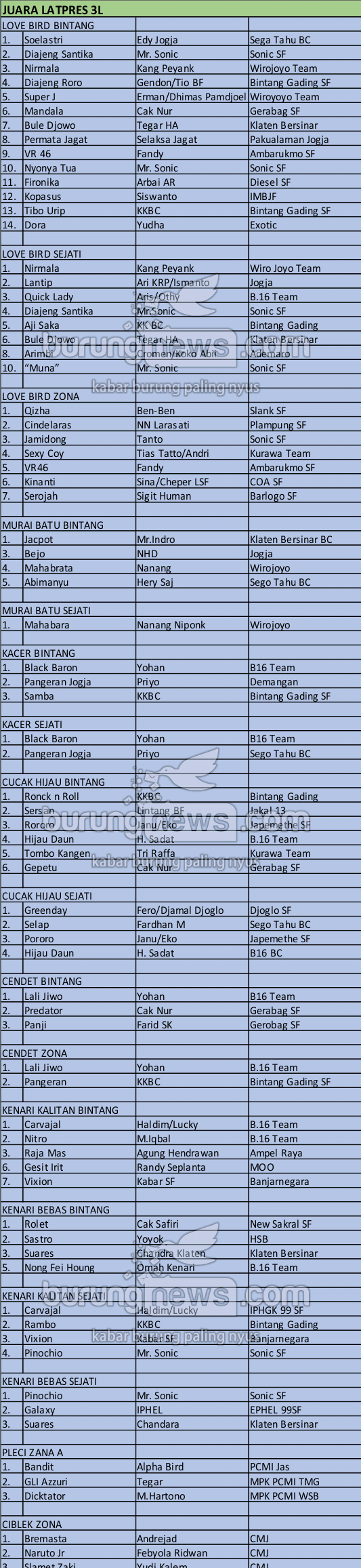 Hasil Lomba Burung